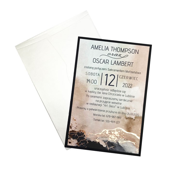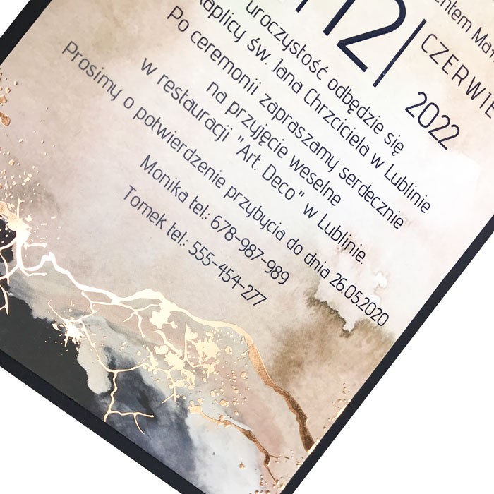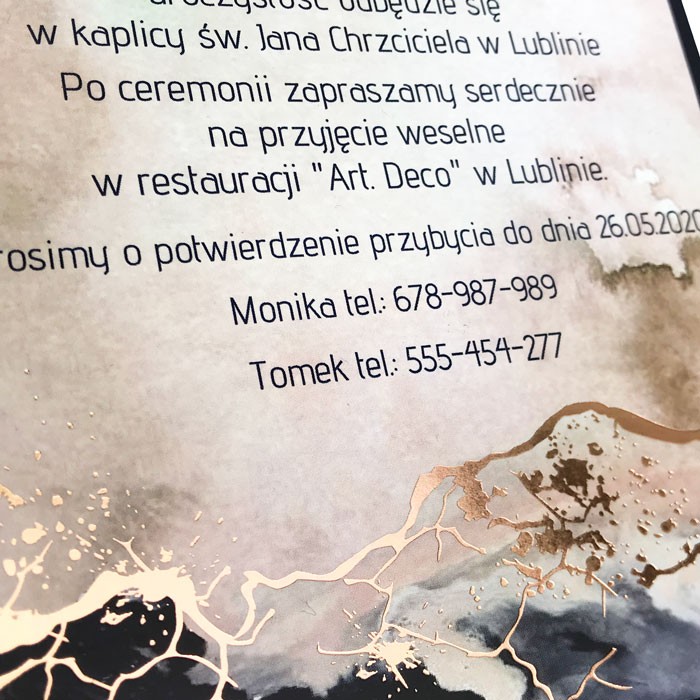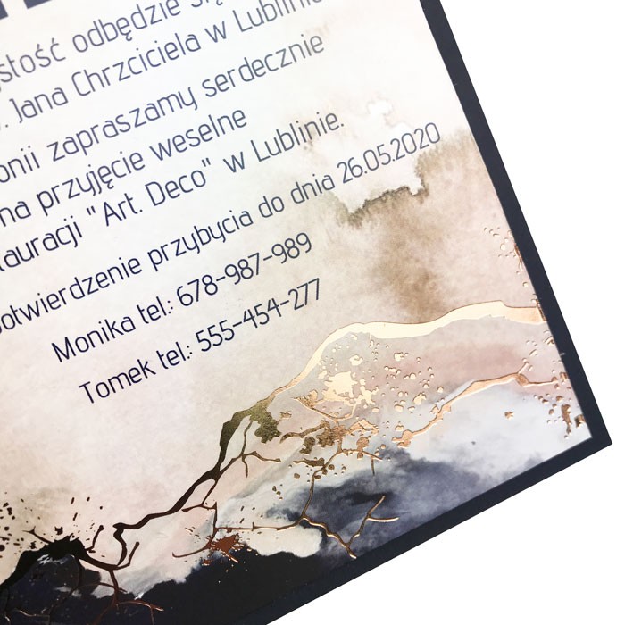 Zaproszenie wysyłamy w formie gotowej do wręczenia. Zaproszenie wykonane z ogromną starannością i dbałością o detale. Precyzyjny nadruk, dokładność wykonania oraz wysokiej jakości papier.
