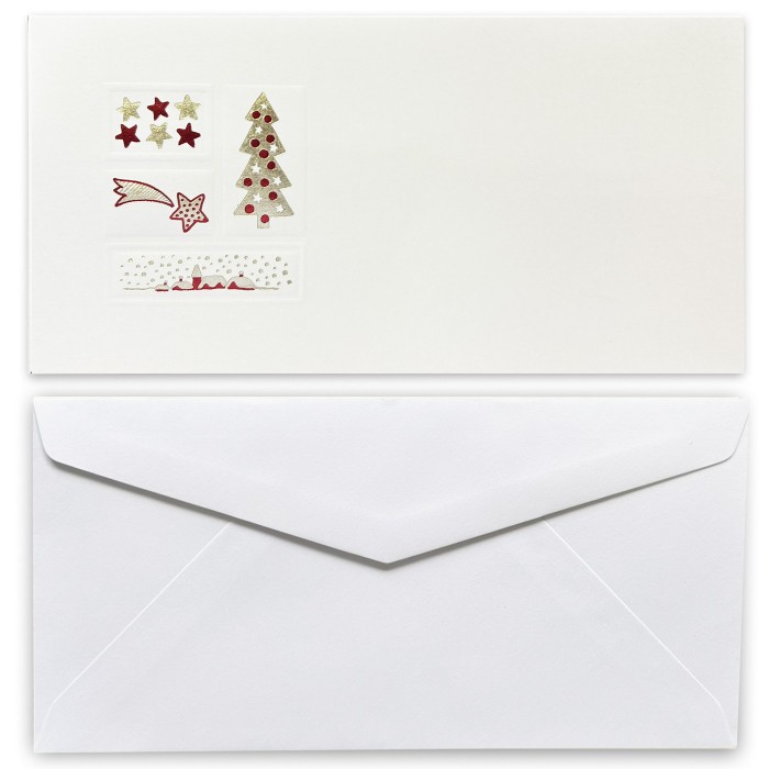 Kartka świąteczna z kopertą, wykonana z wysokiej jakości ozdobnego papieru, z precyzyjnie nadrukowaną grafiką świąteczną i uszlachetnieniem, łączy w sobie prostotę i elegancję. Idealna do samodzielnego wypisania życzeń lub nadruku we własnym zakresie.