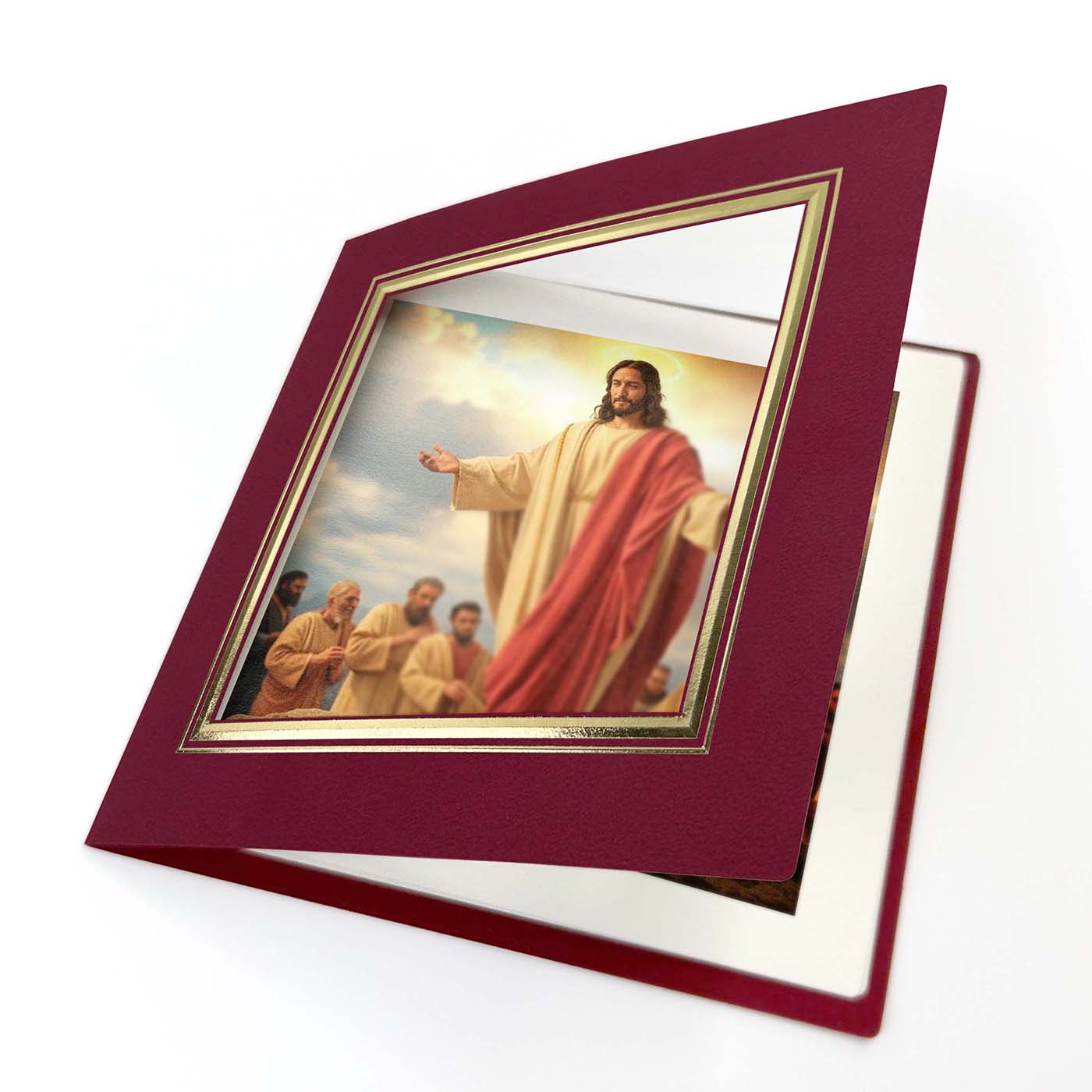 • Technika wykonania: tłoczenie 3D, złocona ramka z dekoracyjnym oknem