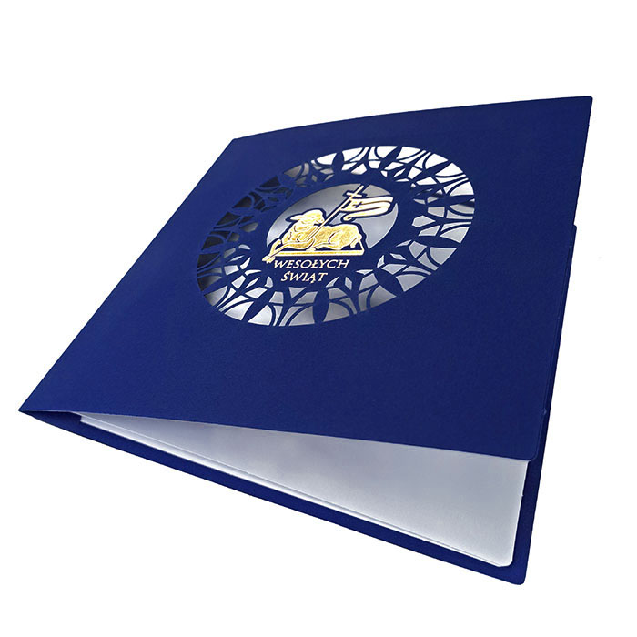 Zestaw tworzą kartki wielkanocne o podniosłym, religijnym charakterze, zaprojektowane z myślą o eleganckiej i reprezentacyjnej komunikacji świątecznej. Głęboki granatowy kolor okładek w połączeniu ze złoceniem nadaje całości szlachetny, klasyczny wygląd, doskonale wpisujący się w duchowy wymiar Świąt Wielkanocnych.