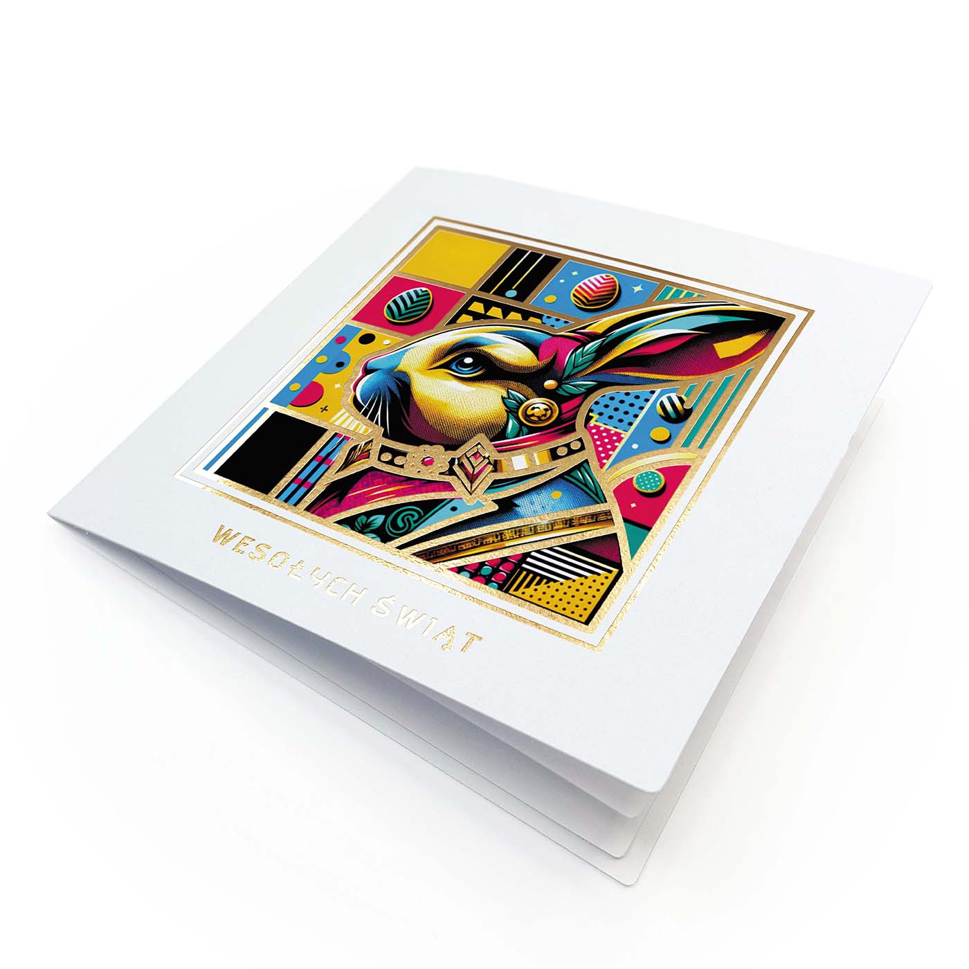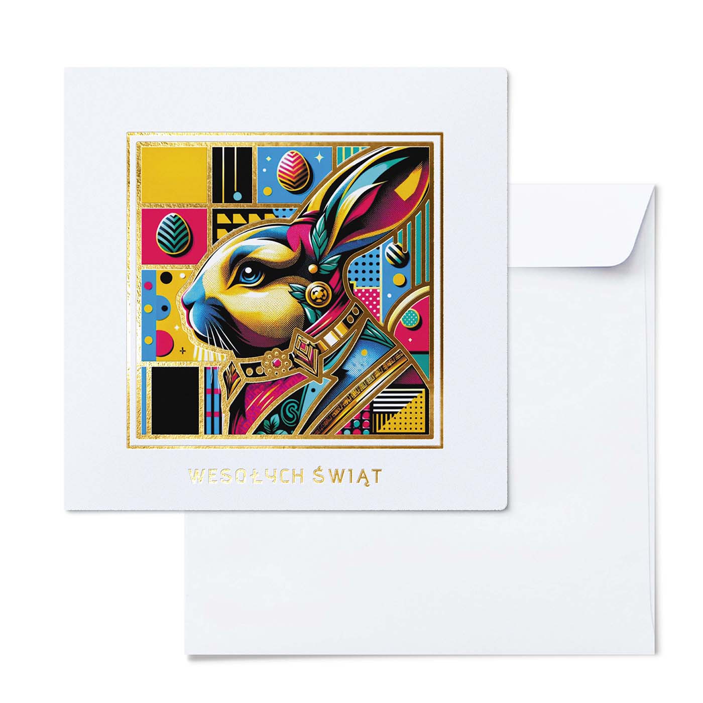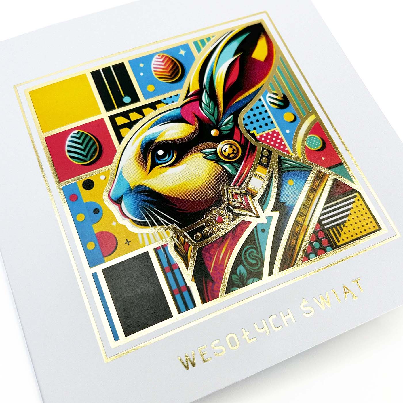 Kartka Wielkanocna z Kolorową Grafiką i Złoceniem Artystyczny Zając