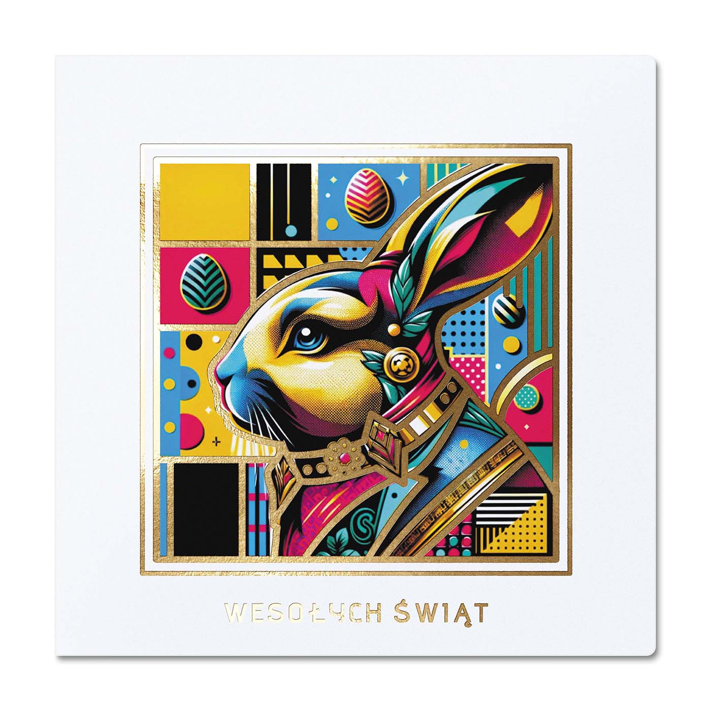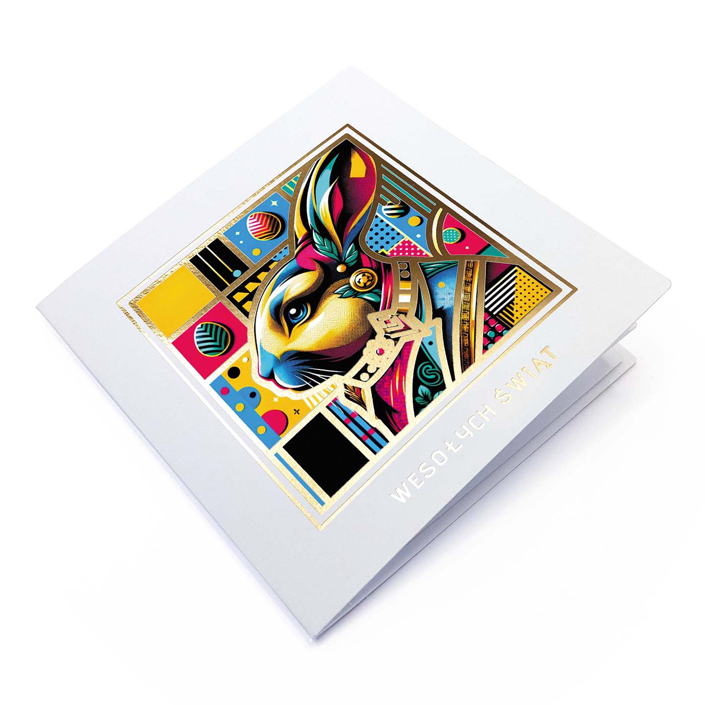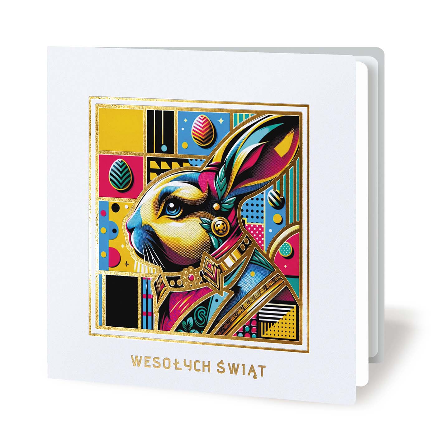 Kartka Wielkanocna z Kolorową Grafiką i Złoceniem Artystyczny Zając