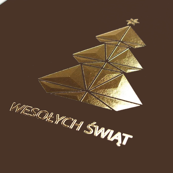 - Trójwymiarowy motyw choinki ze złotą folią na froncie